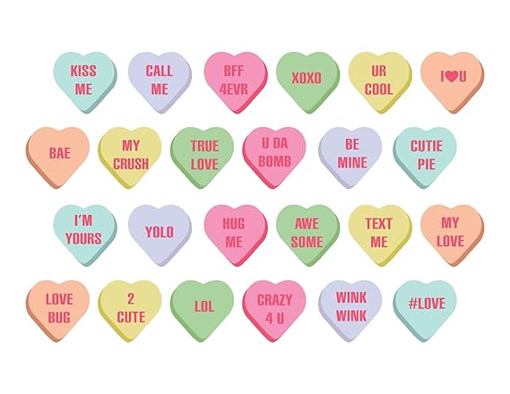 Use the pre-printed clip art designs for patterns stencils coloring pages and cutting files. In addition to classic messages like. Best and Worst Candy Heart Sayings of All Time - Slow Family.